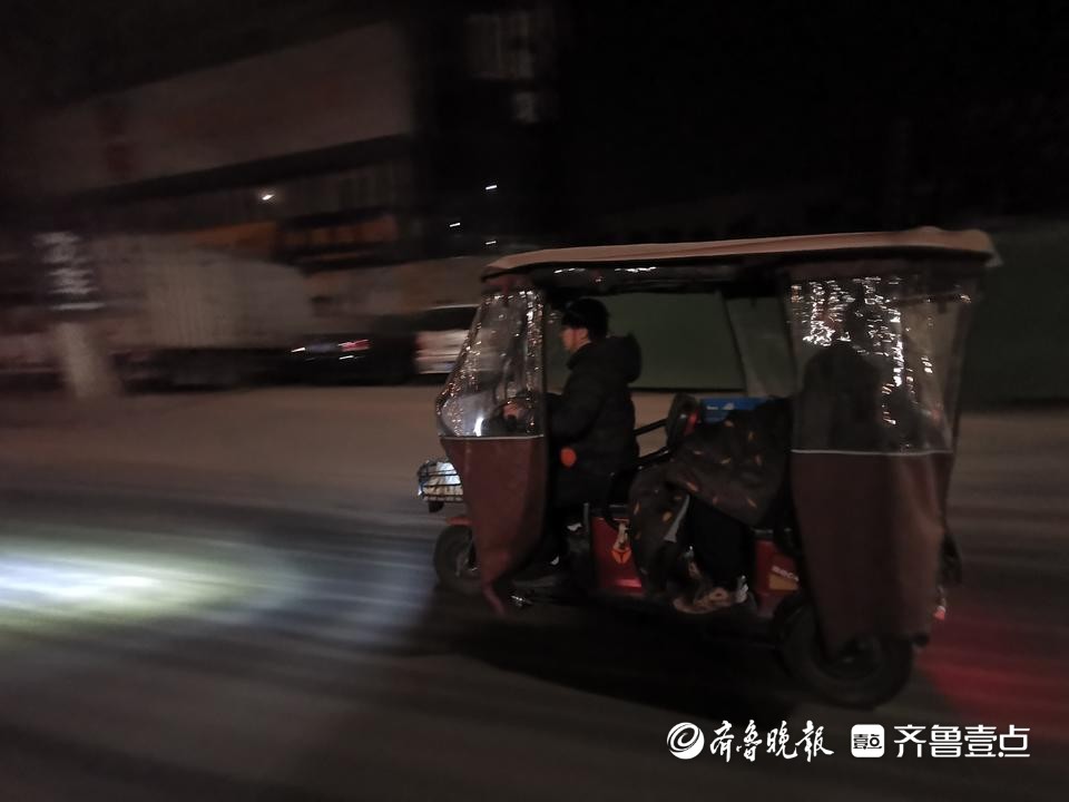 尽管如此,她也没停下脚步,熟练地坐上三轮车驾驶位。母子俩就这样在夜幕中出发了。