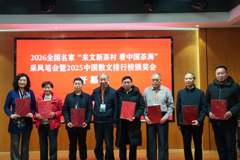 1月12日至14日,由《海外文摘》《散文选刊·下旬刊》、信阳文新毛尖集团有限公司主办的“2025年中国散文排行榜”颁奖会在河南信阳举行。会上公布了2025年年度上榜的50篇优秀散文作品、散文集。中国作家协会副主席白庚胜出席并讲话,信阳文新毛尖集团董事长刘文新发言,作家蒋建伟、林东林、韩强毛等数十人参加了活动。
