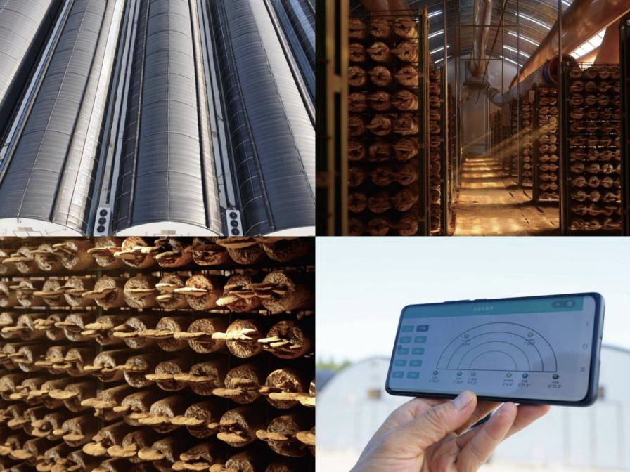 在种植培育方面,通过温度、湿度、光照、二氧化碳浓度四维智能调控,模拟自然生态,实现灵芝365天科学化、有机化种植。不仅如此,远程控制系统的引入,实现了对灵芝种植环境的精准调控。这一设计案例不仅已通过国家知识产权局的审核,被授予发明专利“一种节能高效的培育灵芝数字化大棚”,还被烟台市农业局认定为《数字农场》,在灵芝的种植培育领域起到了良好的示范作用。针对灵芝孢子粉的收集应用,喜蕈生物首创了“一种洁净的帐篷式收集灵芝孢子粉系统”发明专利,通过封闭式采收、分次收集,避免了粉尘污染,从源头保证了灵芝孢子粉原料的新鲜度和洁净度。