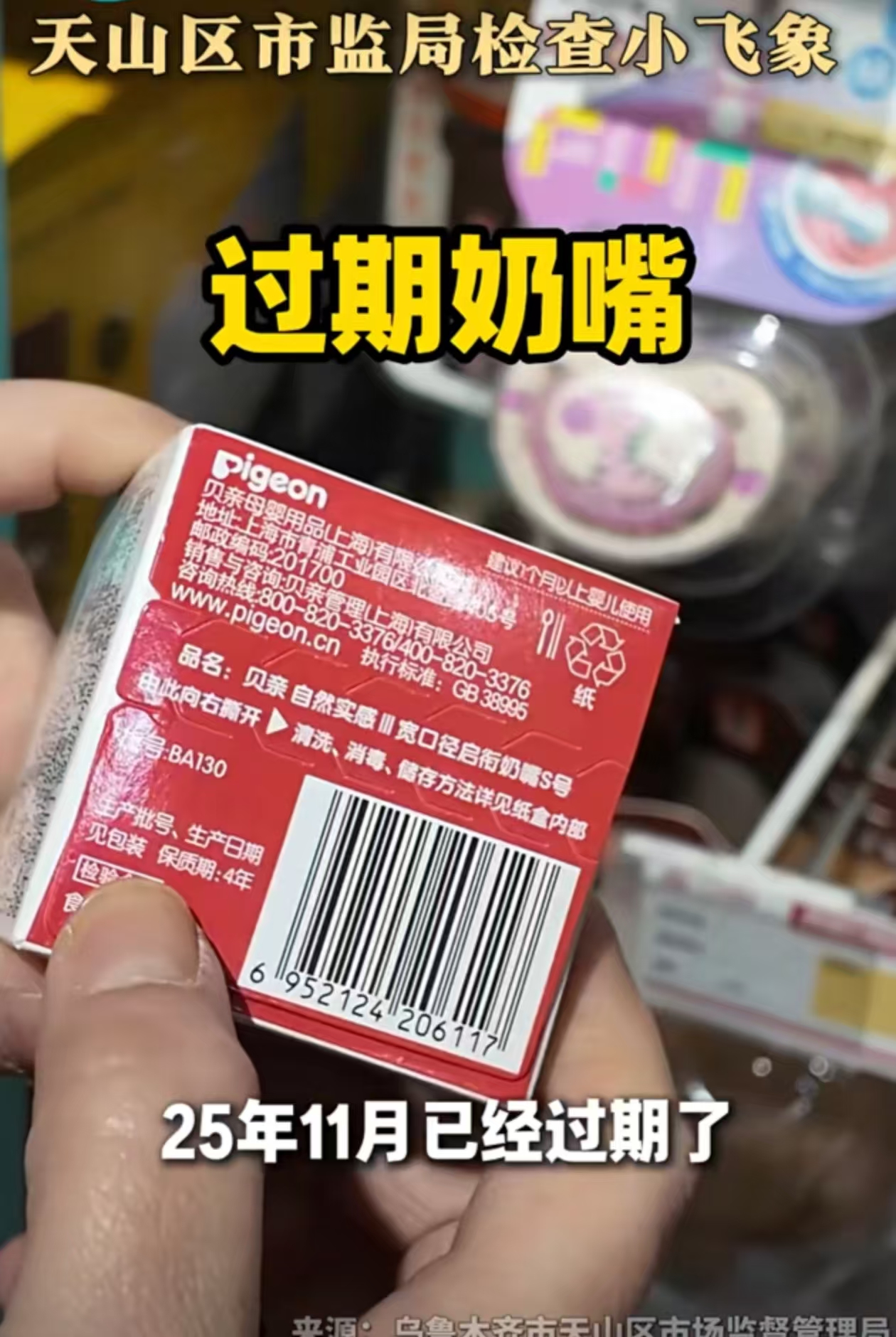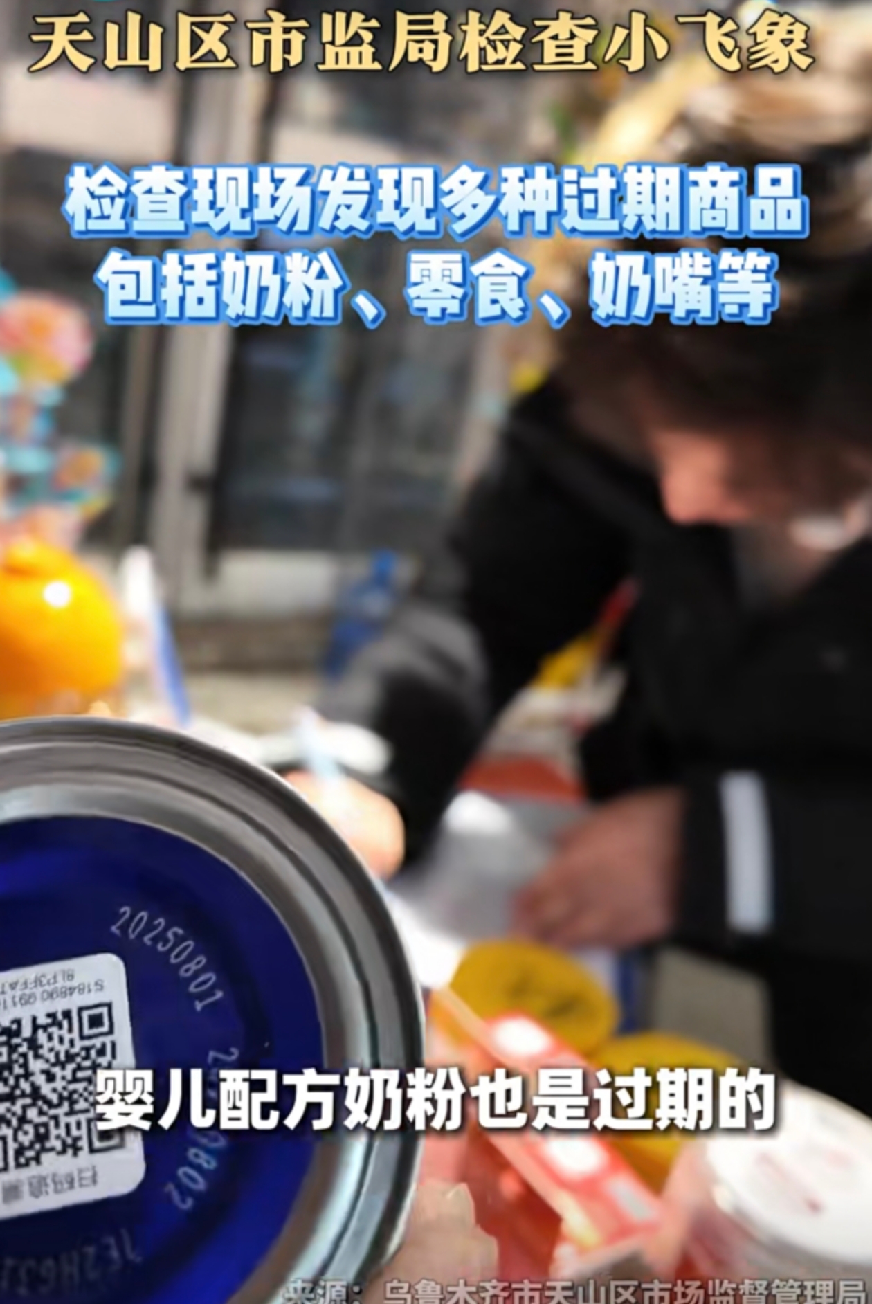 近日,乌鲁木齐天山区市场监督管理局发布对母婴用品店开展检查的视频,视频显示检查人员在辖区小飞象孕婴童精品馆发现多款产品过期,包括婴幼儿配方奶粉、零食、奶嘴等,从过期几天到过期10个多月不等。货架上还有大量临期商品。