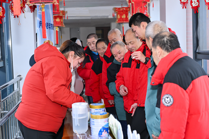 志愿者与长者们围坐一起,冲泡品尝奶粉,将温暖陪伴融入日常生活瞬间,笑容洋溢,温情满溢。
