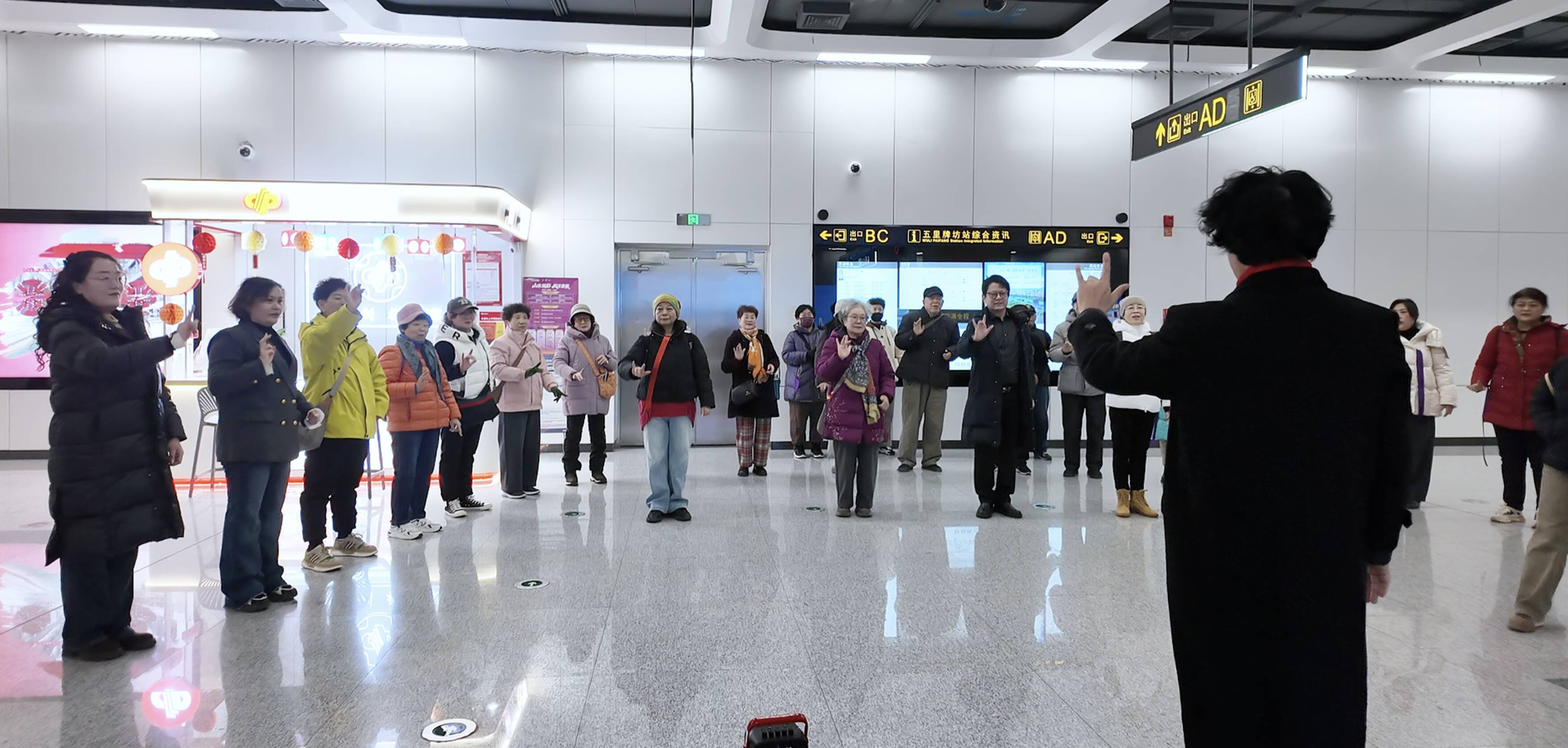 活动中,社区工作人员提前对接辖区残疾人及家属,细致摸排出行需求、身体状况等,量身定制活动流程与安全保障方案。同时,社区志愿者化身“贴心护航员”,分组结对陪伴残疾人朋友们出发。在地铁站点等候区,一场精心准备的手语舞《最好的未来》悄然上演。残疾人朋友们精神抖擞、列队整齐,跟着悠扬的旋律舒展双臂、变换手势,每一个动作都饱含对生活的热爱,每一个眼神都传递着对未来的憧憬。无声的演绎展现了他们自强不息、乐观向上的精神风貌,引得过往市民纷纷驻足点赞。踏入整洁明亮的地铁车厢,舒适的乘车环境让大家赞不绝口,大家兴致勃勃地交流着城市的变化,用手机定格彼此的笑容与温馨瞬间。