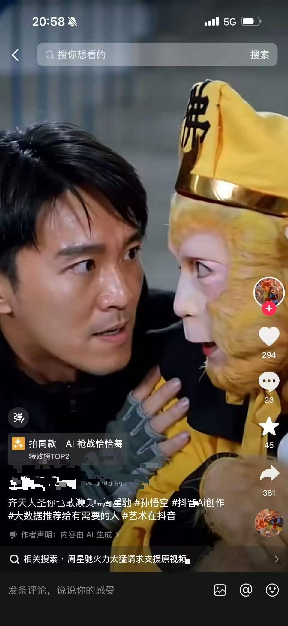 一方面,许多普通用户将AI生成明星视频视为一种“技术炫技”或“粉丝创作”,并未意识到其法律风险。这种认知模糊被部分营销号利用,通过搬运、模仿乃至批量生产此类内容,以追逐流量红利。随着“AI周星驰对话”等视频获得数十万点赞,其潜在的商业变现路径(如引流、广告、账号交易)逐渐清晰,驱动更多跟风者涌入,使得创作的性质从“为爱发电”转向“流量掘金”。