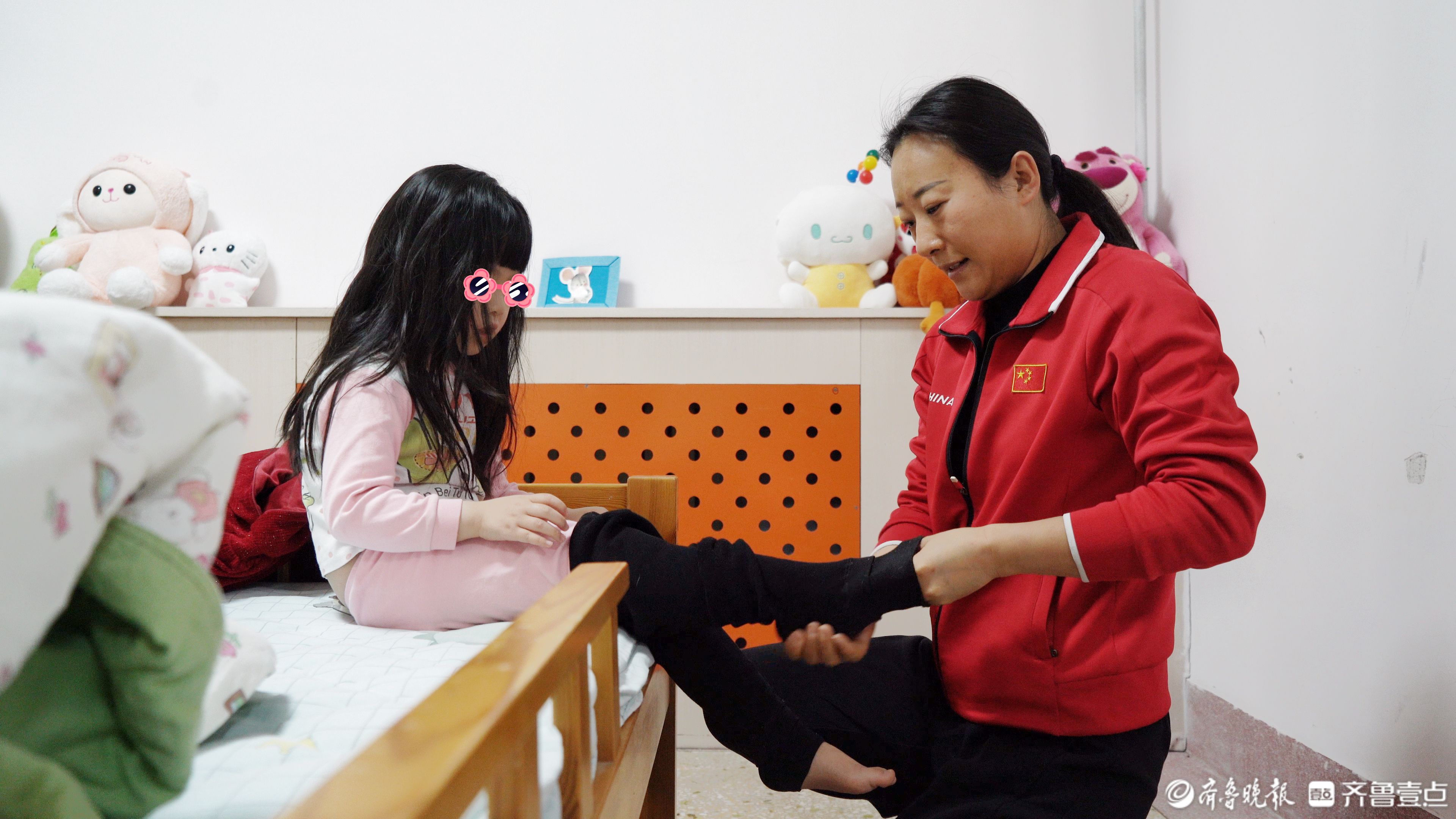 彼时,“姐妹花”嘟嘟和希希已经醒来,准备自己穿衣。对于记者的突然到访,她们没有胆怯,反而开心的挥了挥小手。男孩子们还未从睡梦中醒来,但在嘟嘟和希希的“帮忙”下,男生宿舍的灯很快亮起了。在张沙沙的小家庭里一共有6个孩子,除了大山因为身体原因无法上学,需要在院内跟随专业教师和康复师进行学习和康复外,其他5个孩子都在院外的学校就读。