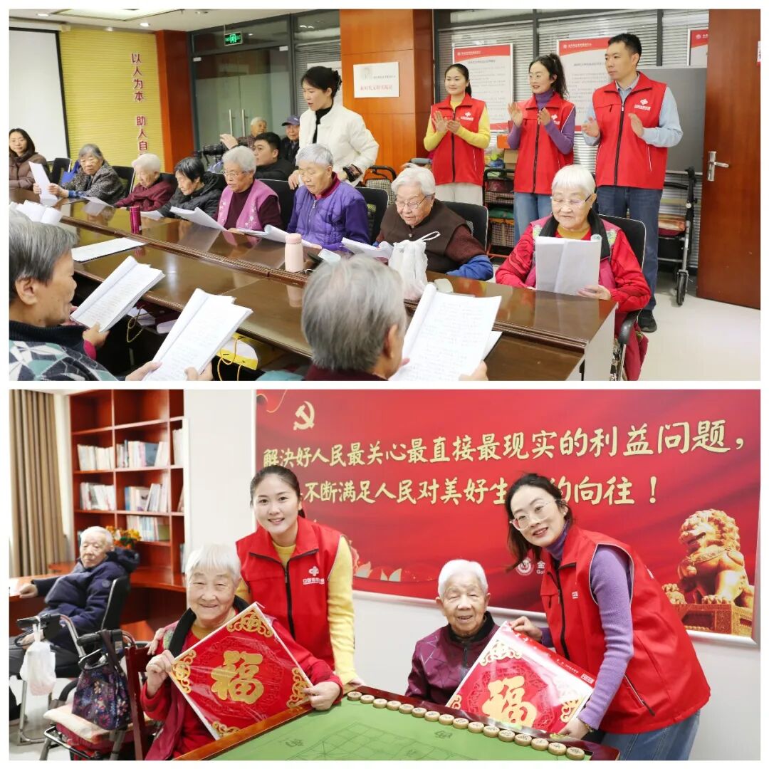 2月5日,福彩志愿者们走进潍坊市奎文区金色阳光养老服务中心,为老人们送米、面、油、鸡蛋等生活物资以及精心准备的“新春福袋”。志愿者走进活动室与老人们闲话家常,倾听老人心声;走进合唱室与老人们一同欢歌,悠扬的歌声回荡在院内,让老人们在温馨的氛围中感受节日温情。