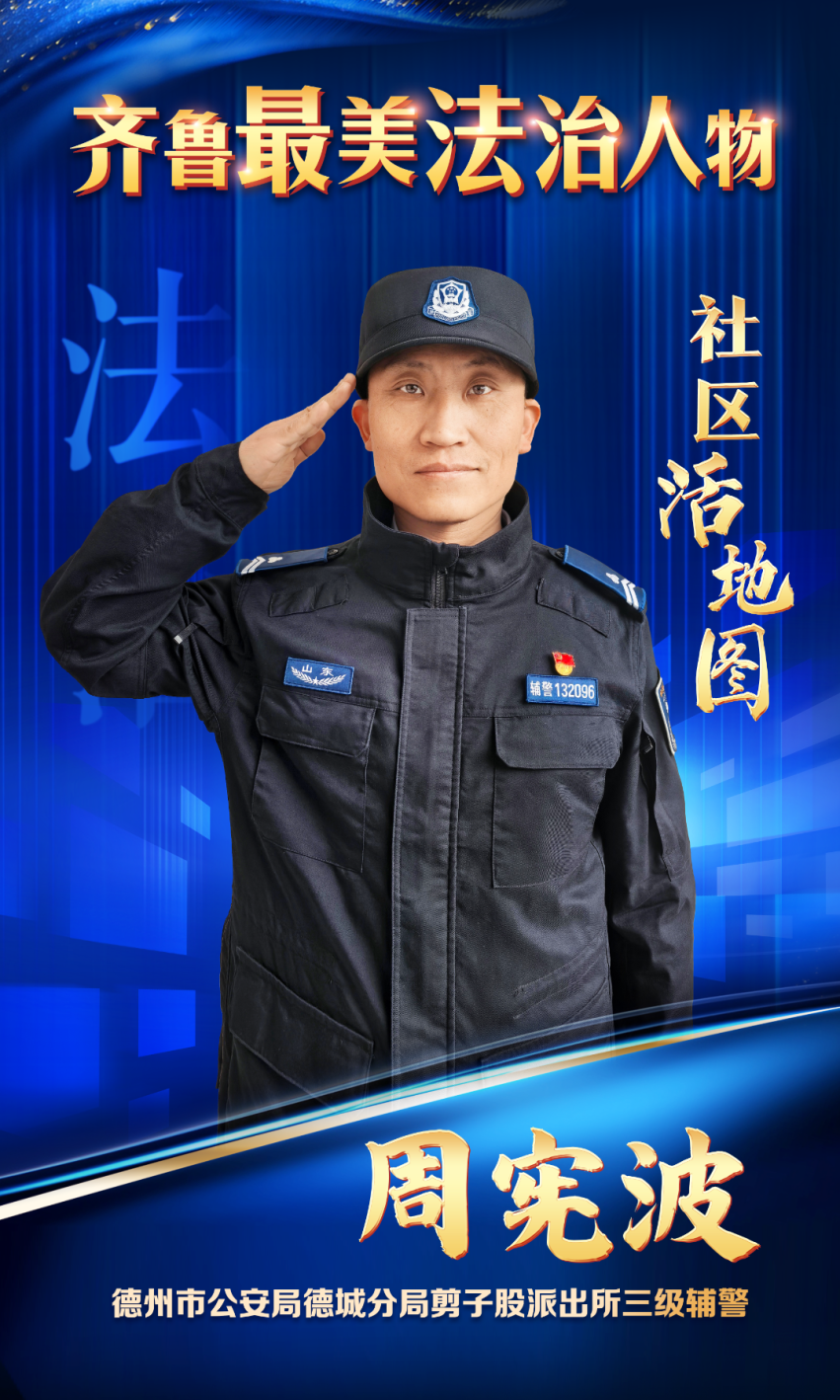 德州市公安局德城分局剪子股派出所四级辅警周宪波,自2004年参加公安工作以来,始终扎根在基层派出所一线。2015年,他主动请缨,到治安状况最复杂的北营社区担任社区辅警,从事社区警务工作10年,他“长”在社区,把群众当亲人。