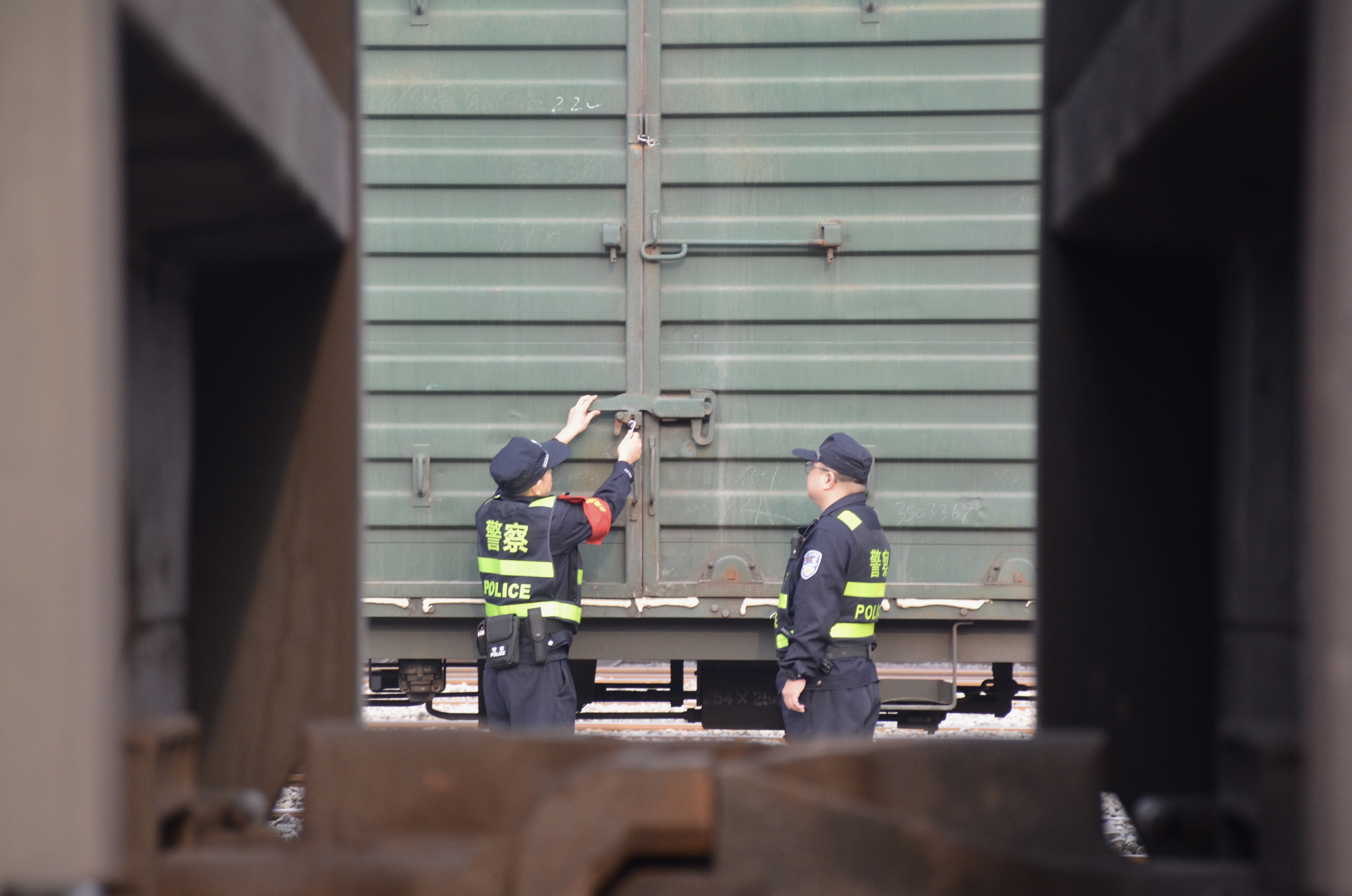 图:济南铁路公安处济西站派出所民警到货场开展日常巡查