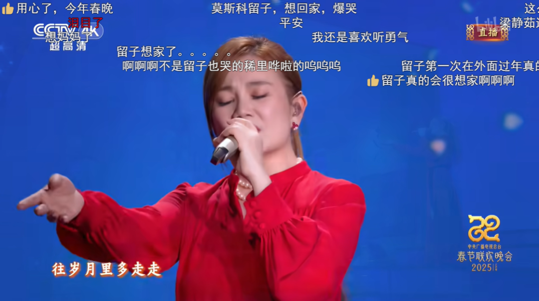 当梁静茹演唱起回家过年主题的歌曲,许多观众通过弹幕抒发思念之情。