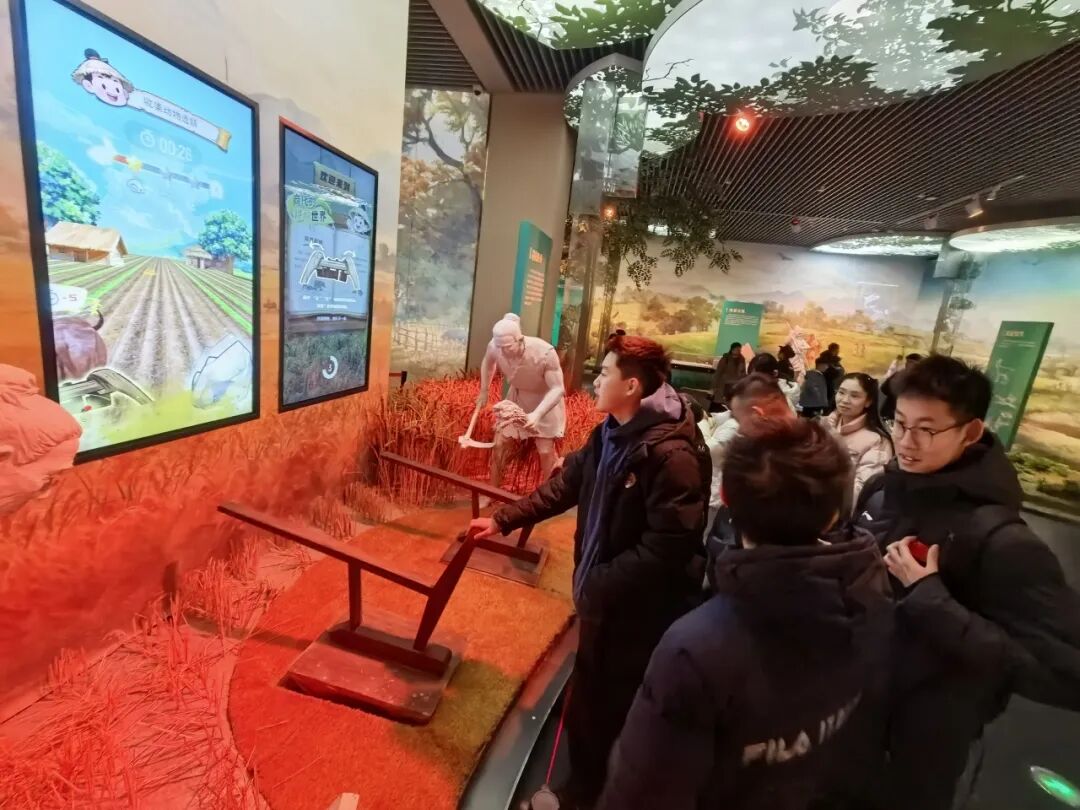 “环境与生业”展厅内,学子们通过体验农耕、观摩原始耕种工具展示,了解到商代大辛庄地区温暖湿润的气候环境,以及先民因地制宜发展农业、手工业的历史。当时的先民种植五谷、饲养家畜,兼营采集和渔猎,同时发展出制陶、铸铜等手工业门类,形成了以农业为主、手工业发达的经济形态。同学们在实践体验中,真切感受早期科技萌芽,理解了劳动与智慧对文明发展的重要推动作用。