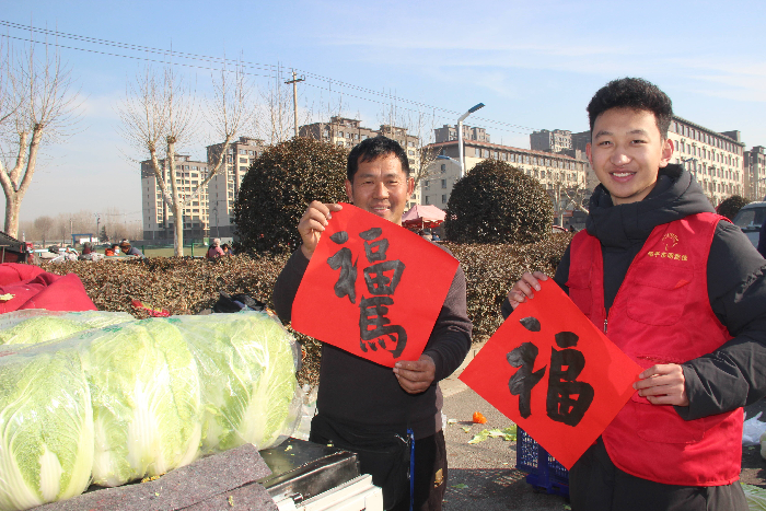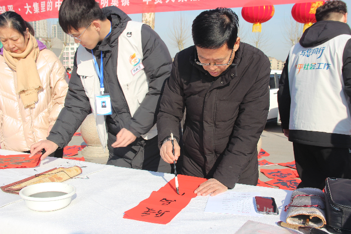 “春归明集千般好,福至农家万事兴”,一幅幅春联对仗工整、寓意深远,既饱含着对新春的美好祝福,又巧妙融入明集元素与邹平底蕴,字里行间都是地道的家乡味儿。“买的春联再好,也不如书法家亲手写的有味道!不仅字写得漂亮,还接地气,贴在门上,年味儿都更足了。”拿着刚写好的春联,李大爷小心翼翼地折好,脸上满是欢喜。书法家们耐心倾听群众的需求,按需书写个性化春联,一上午就挥毫写下春联500余副、福字700余个,红纸墨迹间,皆是新春的期盼与文化的温度。