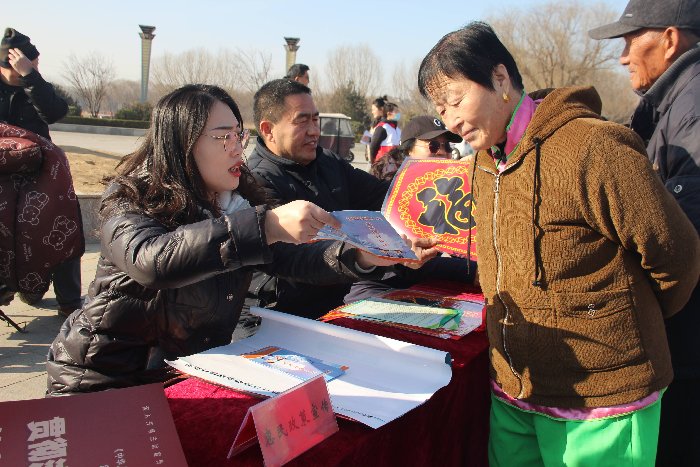“大娘,您你看着这张纸,我给您一点一点说。”惠民政策宣传摊位前,志愿者们俯下身子,耐心为前来咨询的老年人讲解参保政策、缴费标准和领取流程,手把手指导操作方法,累计发布宣传手册200余份;安全宣传专区内,工作人员结合真实案例,用通俗易懂的语言,向群众细致普及春节期间一氧化碳中毒预防、节前家庭安全检查、电信网络诈骗防范等知识,一遍遍叮嘱、一句句提醒,筑牢群众春节安全防线。