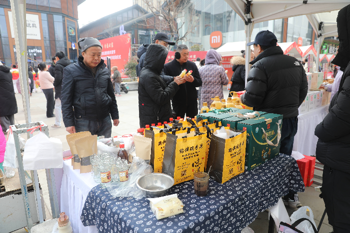 本次年货节,依托悠乐里商业街区的优质资源,整合了辖区内特色商户、知名品牌及本地优质供应商,打造一站式、全品类的年货采购阵地。现场商品琳琅满目,特色好物应有尽有:清甜醇厚的原浆杏汁、香酥可口的香酥大麦虫等本土特色美食挑动味蕾,尝鲜尝新两不误;花馍馍、各类熟食小吃等传统年味美食现做现卖,尝遍地道邹平味道;精品年货礼盒种类丰富,本地特产、坚果零食、酒水茶饮搭配精美,是走亲访友的优选;还有春联福字、新年挂饰等新春文创好物,让市民挑得舒心、买得划算。