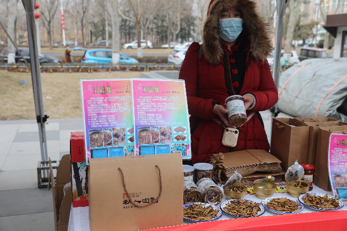启动仪式刚一落幕,现场的各个展销摊位便立刻热闹起来,摊主们热情满满地推介自家特色产品,吆喝声此起彼伏。“自家酿的原浆杏汁,酸甜爽口,无添加!”“香酥大麦虫,香酥补钙,尝鲜价超划算!”摊主们的热情推介吸引着市民纷纷驻足,伸手品尝、询价挑选,现场瞬间洋溢起浓浓的市井烟火气与新春喜庆氛围。