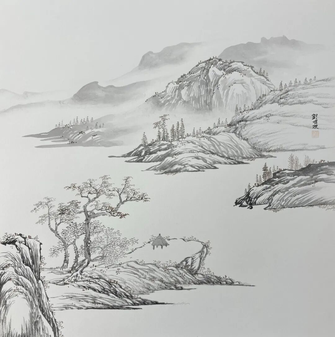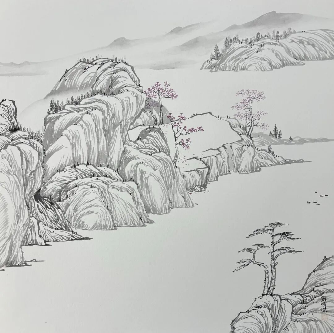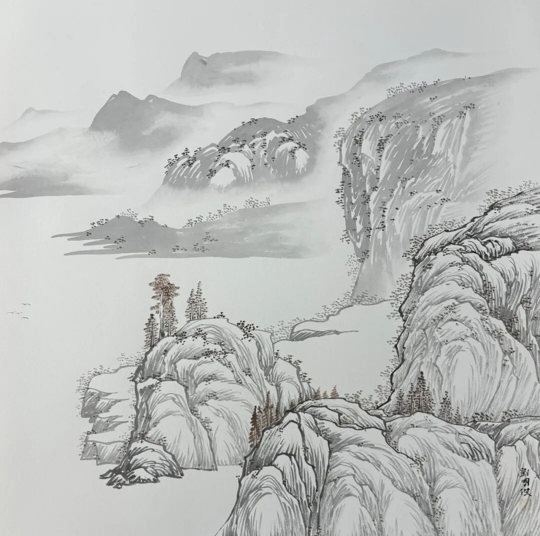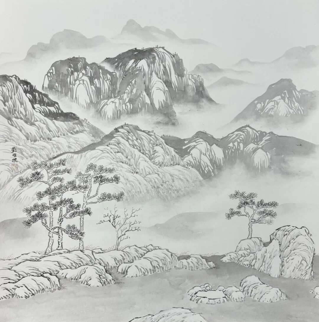 2025年,在临沂新闻大厦美术馆举办“望峰息心-刘明杰山水画展”