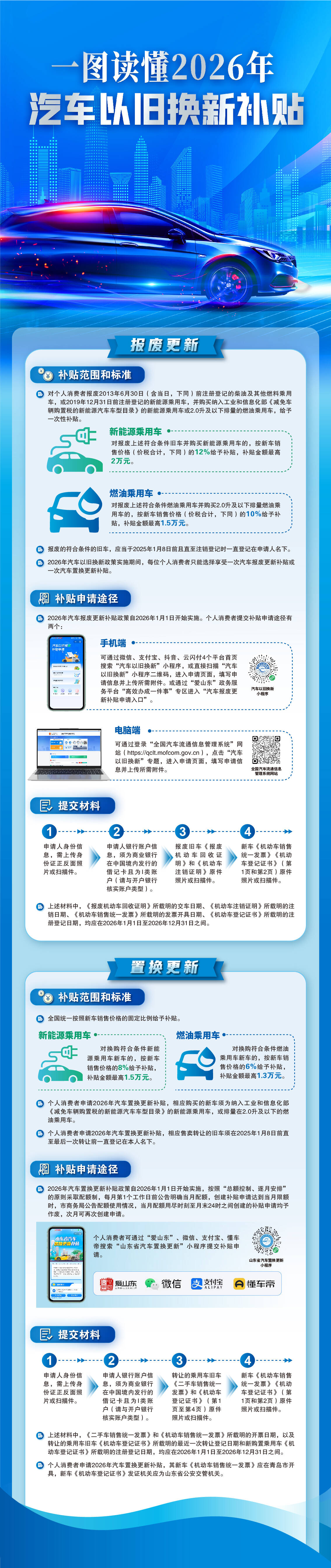 报废更新最高补2万元!青岛印发2026年汽车以旧换新补贴细则