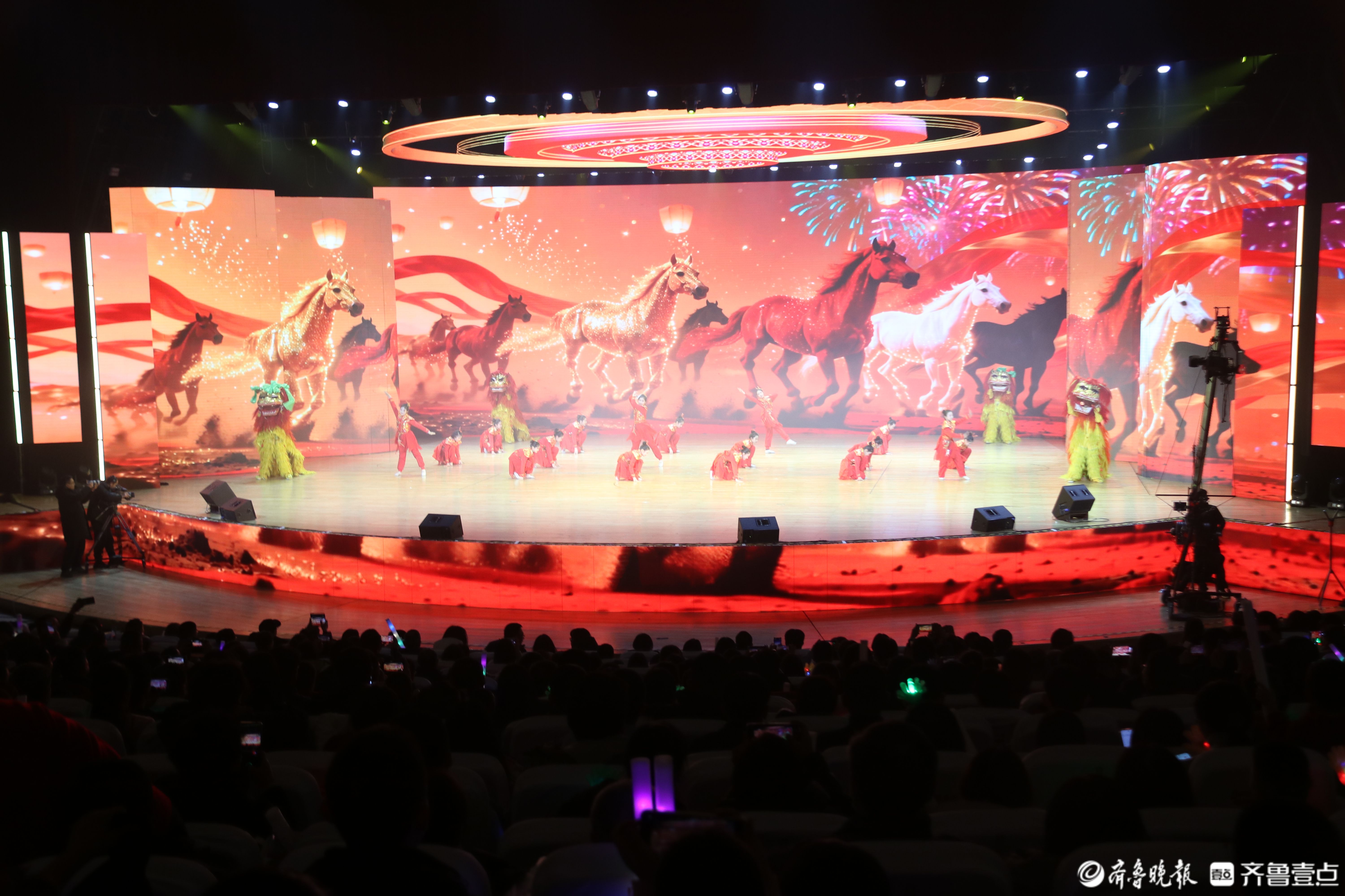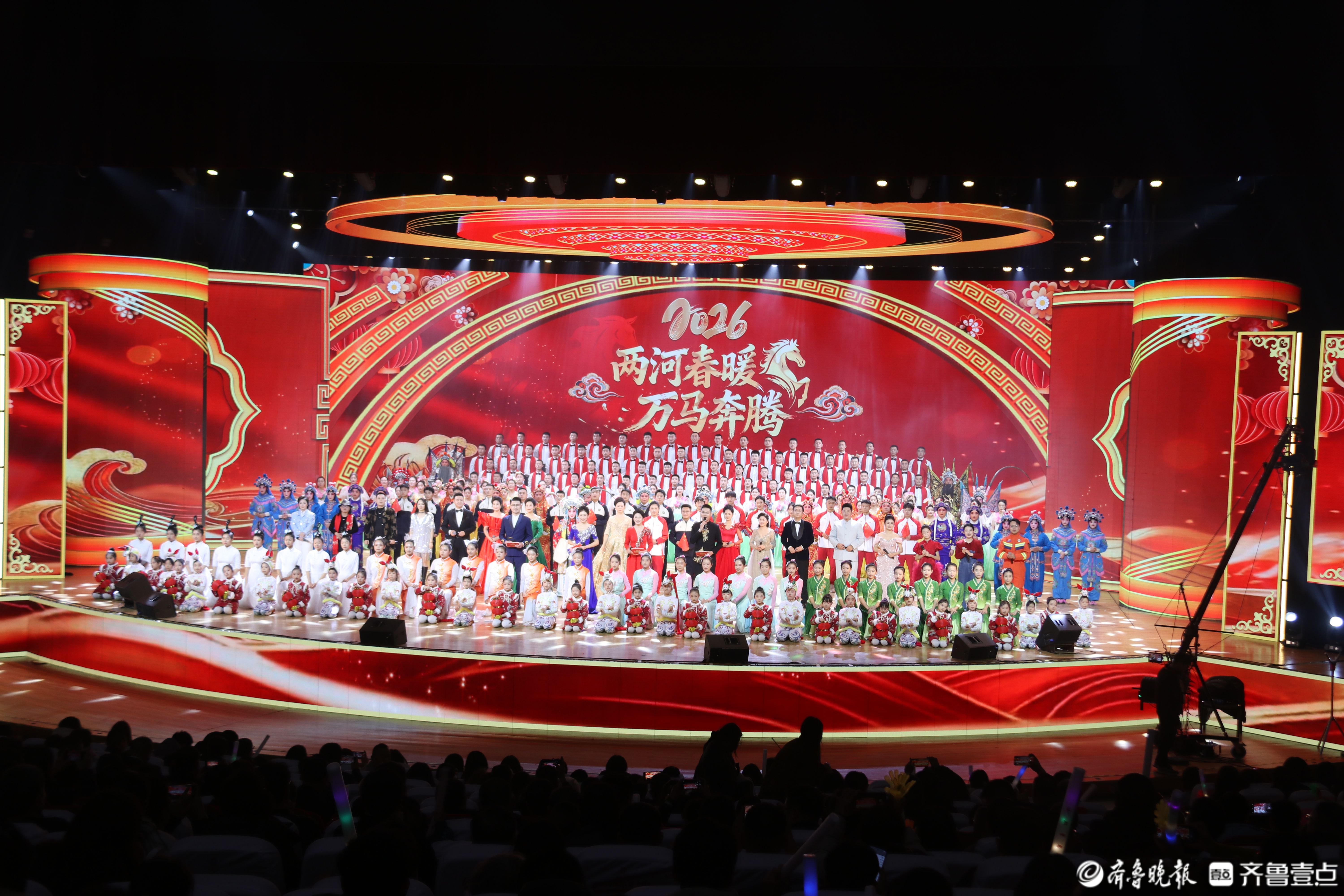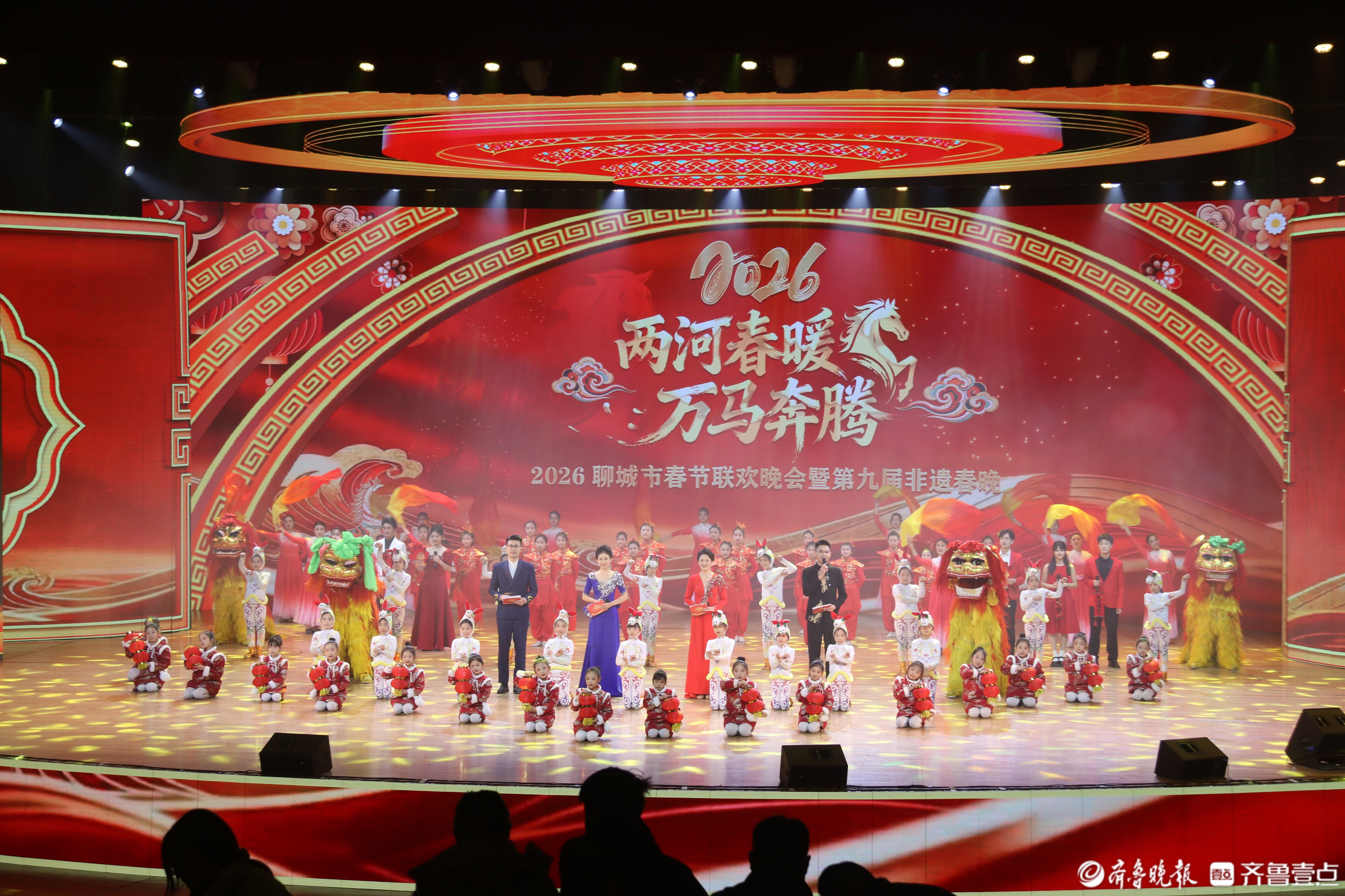 2月11日晚,2026聊城市春节联欢晚会暨第九届非遗春晚在水城明珠大剧院精彩上演。晚会在《春节序曲》的欢快旋律中拉开序幕,随后,杂技舞狮、歌舞《骐骥驰骋迎新春》精彩亮相,用红火视觉与欢腾节奏,点燃全场观众热情。