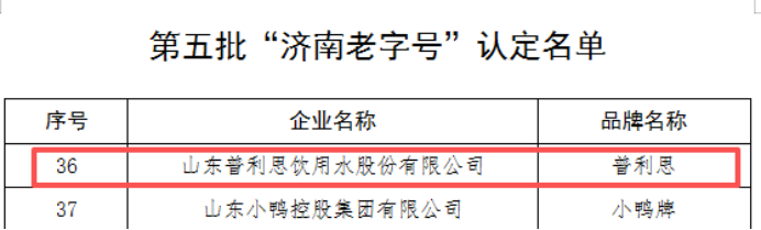 2026年2月11日,济南市商务局正式公布第五批“济南老字号”认定名单,“济南市水”普利思凭借33年品质坚守、泉水文化传承与诚信经营口碑,成功入选,成为济南饮用水行业老字号标杆品牌。